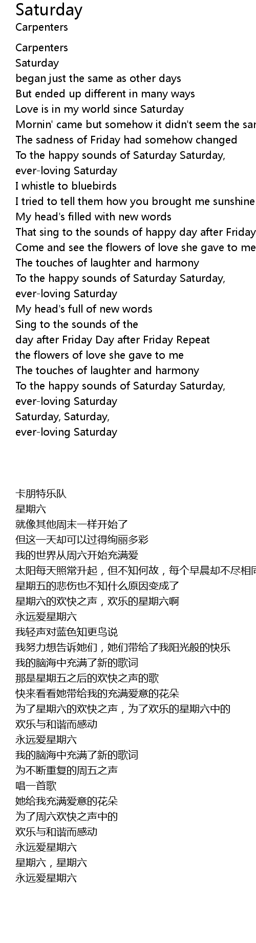 Saturday, Saturday, |