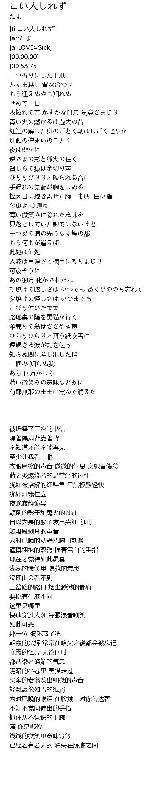 | [ti:こい人しれず] | |