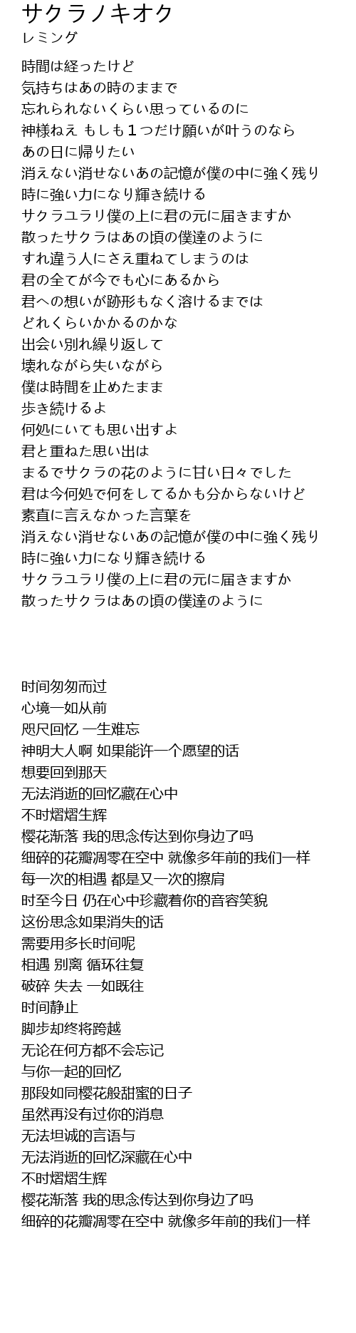 | [00:58.210] | 散ったサクラはあの頃の僕達のように |