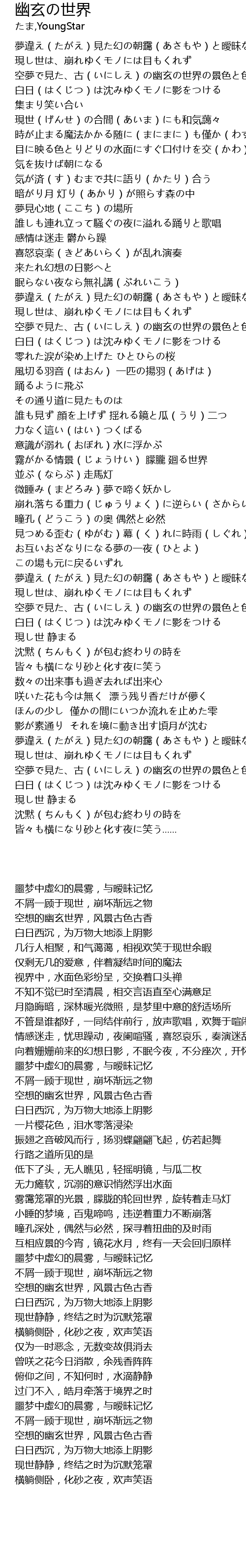 | [00:48.93] | 空夢で見た、古(いにしえ)の幽玄の世界の景色と色 |