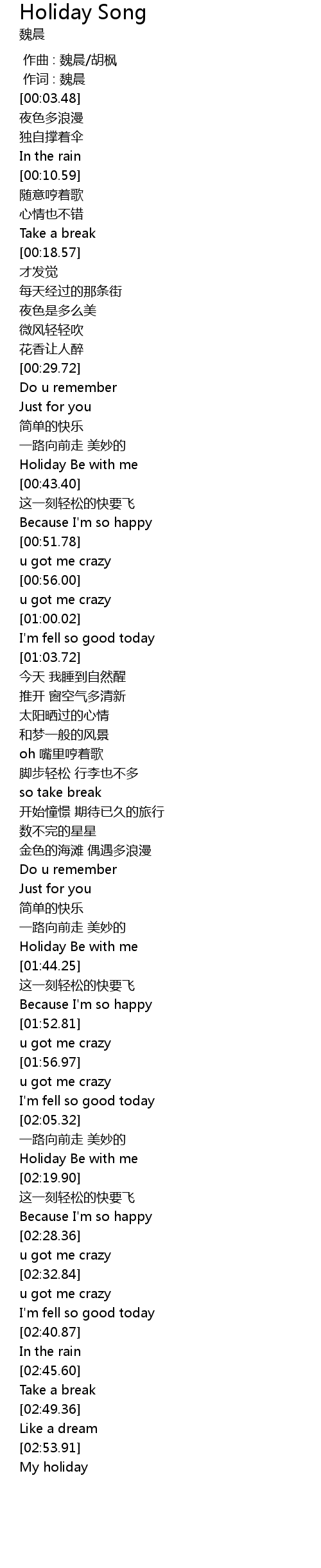 | [00:00.00] | 作曲 : 魏晨/胡枫 |