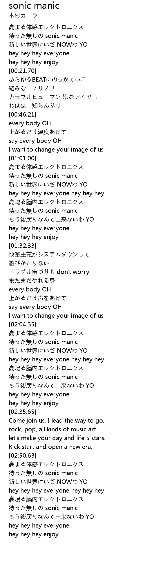 | [02:23.77] | 待った無しの sonic manic |