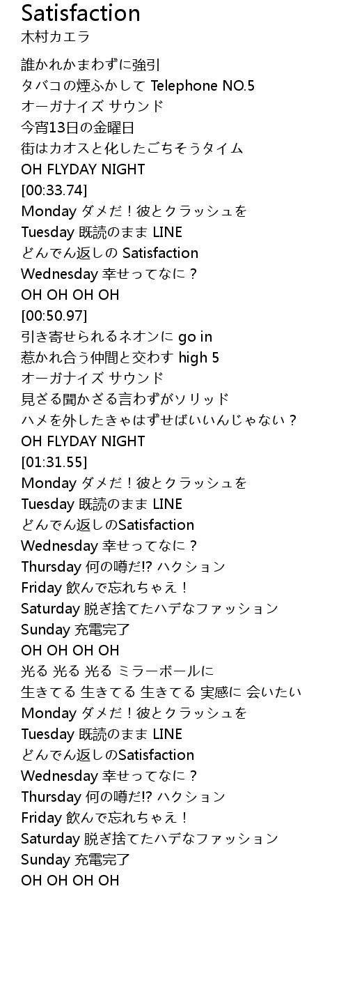 | [01:33.75] | Monday ダメだ!彼とクラッシュを |
