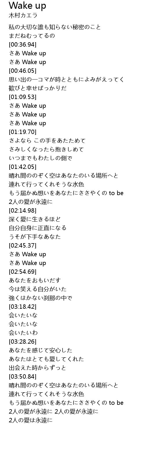| [00:20.33] | 私の大切な誰も知らない秘密のこと |
