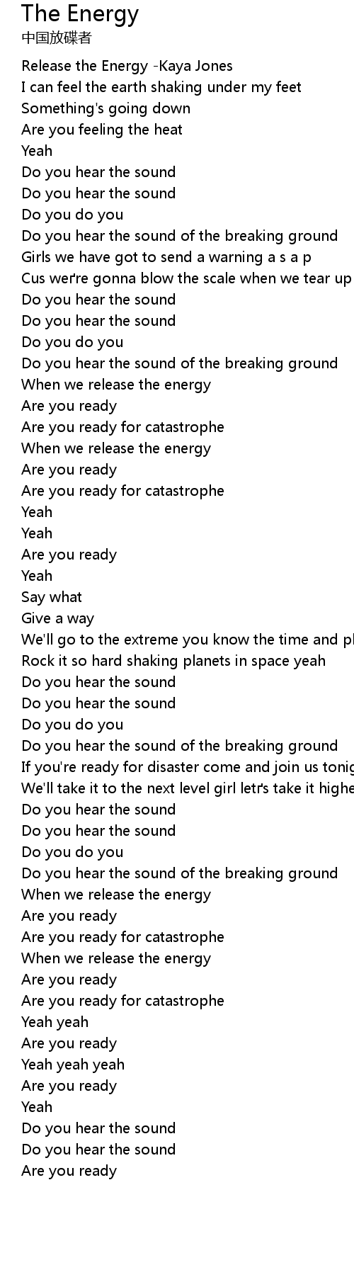 | [00:01.580] | Release the Energy -Kaya Jones |