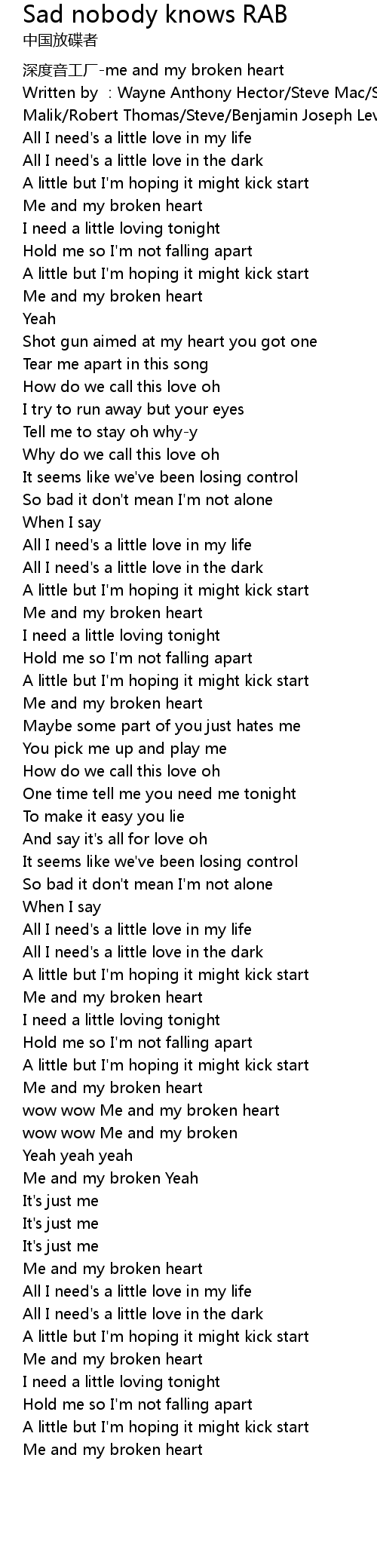 | [02:13.870] | So bad it don' t mean I' m not alone |