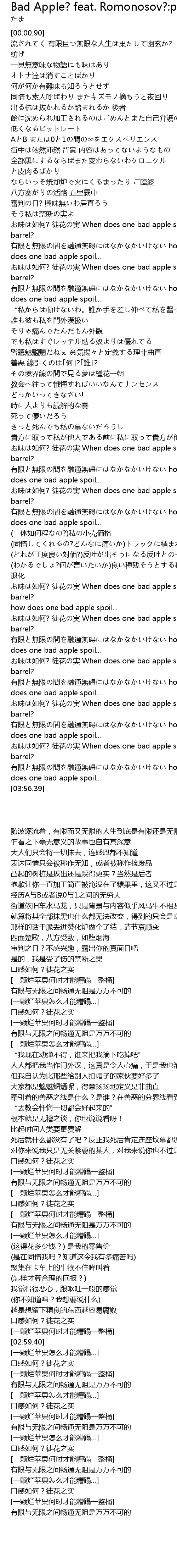 | [03:09.52] | you xian wu xian jian rong tong wu ai how does one bad apple spoil... |