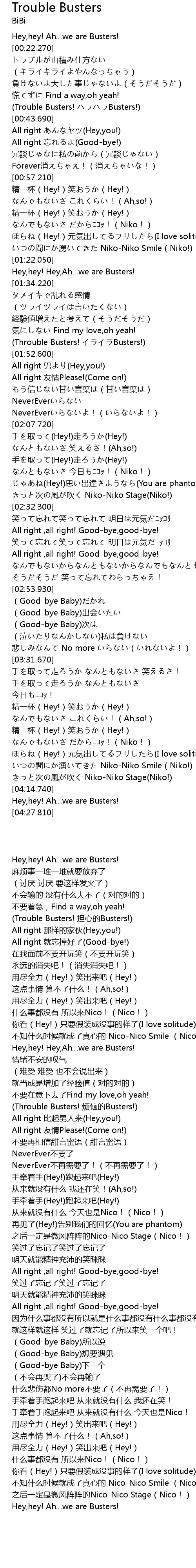 | [01:49.800] | (Throuble Busters! イライラBusters!) |
