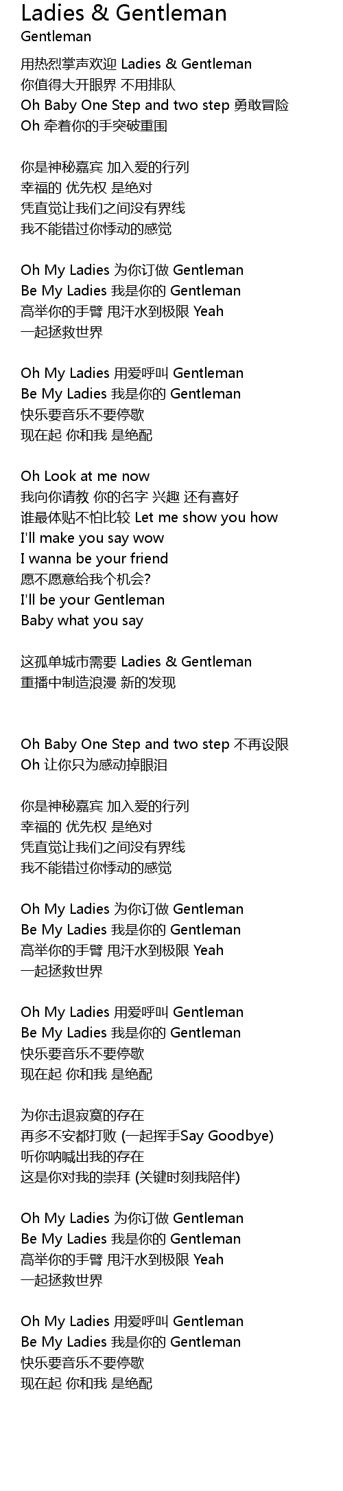 | Be My Ladies wǒ shì nǐ de Gentleman | |