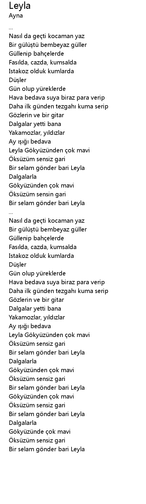 | Bir selam g nder bari Leyla |