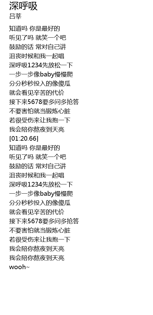 | [01:56.13] | shēn hū xī 1234 xiān fàng sōng yī xià |