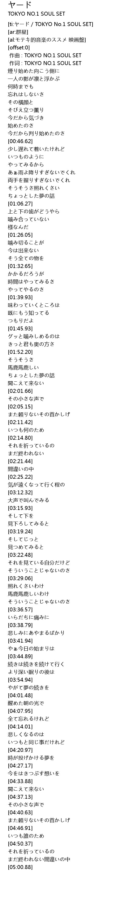 | [ti:ヤード/TOKYO No.1 SOUL SET] | |