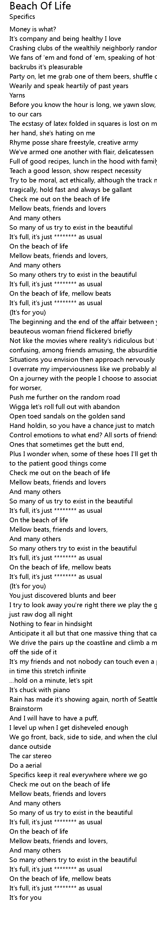 On the beach of life, mellow beats |