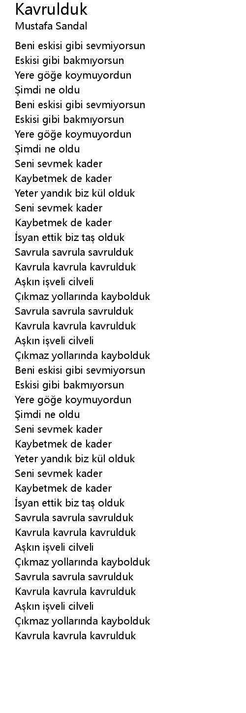 | [03:24.80] | Kavrula kavrula kavrulduk |