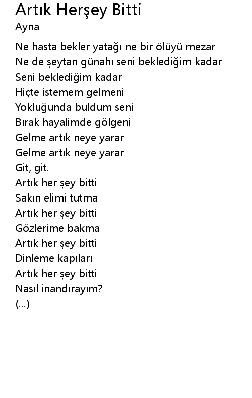 | Song | Artık Herşey Bitti |