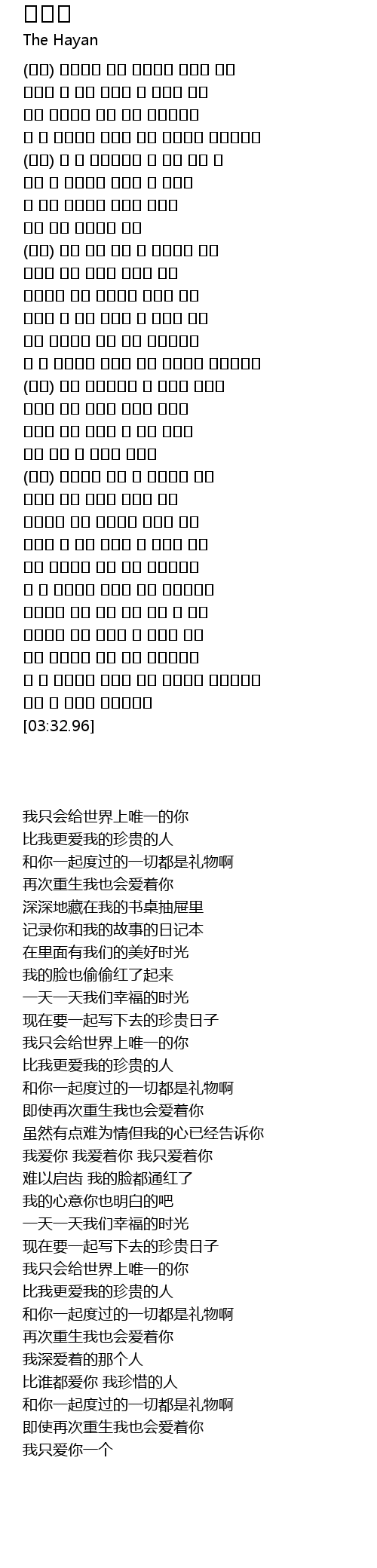 사랑하는 나의 사랑 그대 오직 한 사람 |