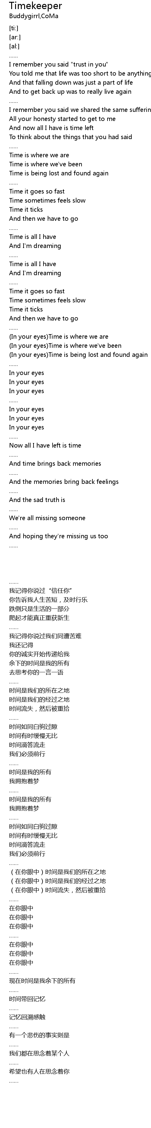 Timekeeper Lyrics