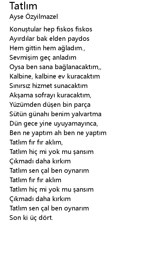| Tatlım fır fır aklım, | |
