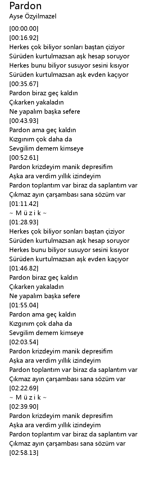 | [02:39.99] | Pardon krizdeyim manik depresifim |