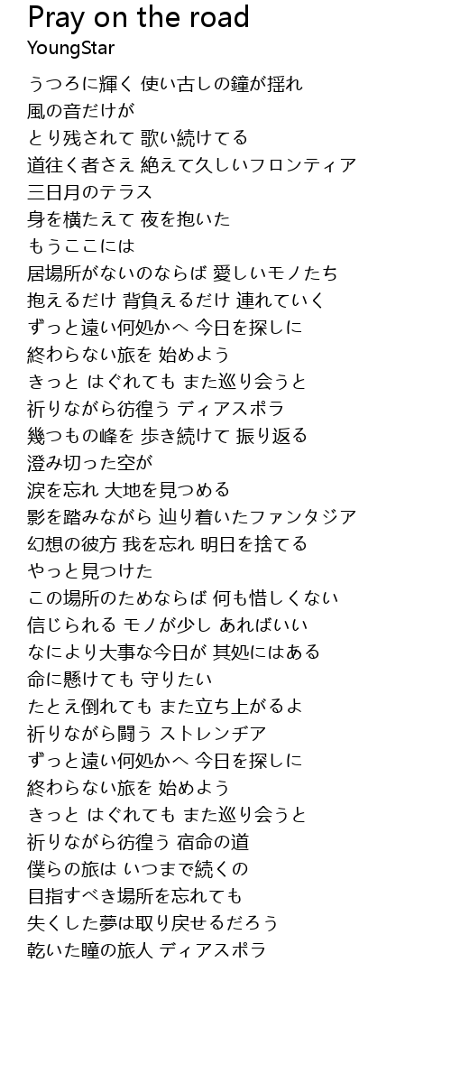 | [01:25.88] | 祈りながら彷徨う ディアスポラ |