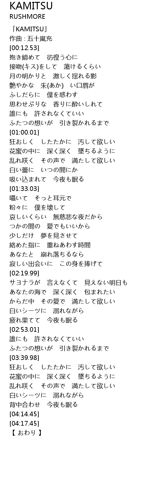 | [03:41.26] | 狂おしく したたかに 汚して欲しい |