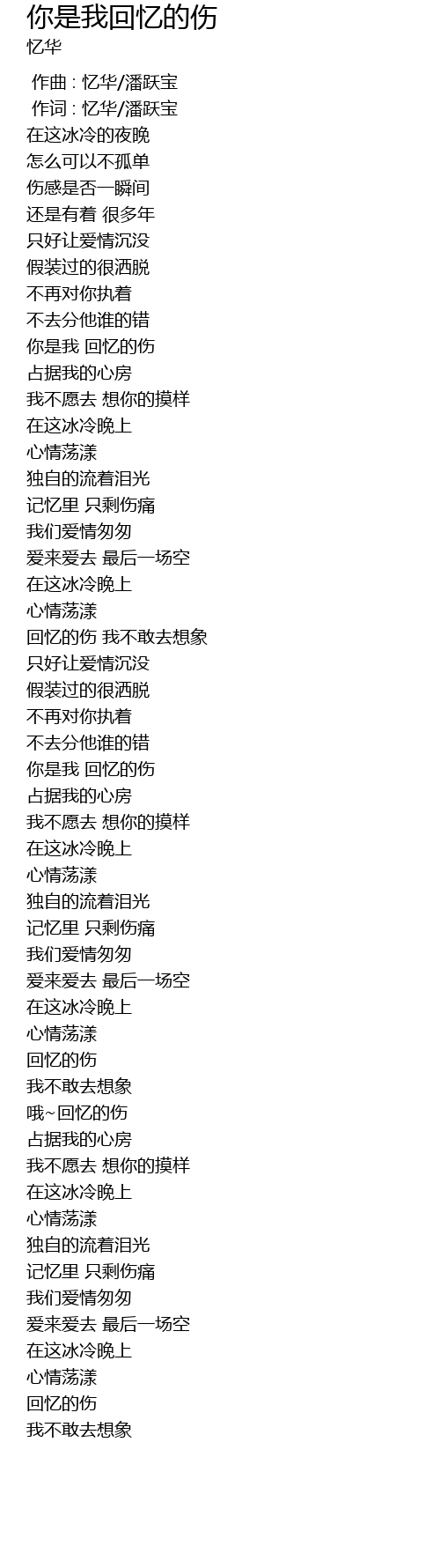 | [00:01.00] | 作词 : 忆华/潘跃宝 |