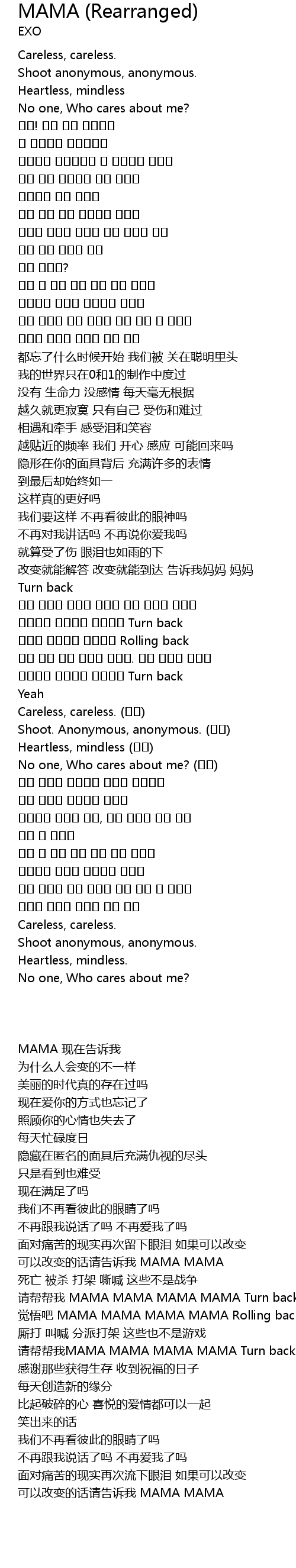 | [03:25.550] | No one, Who cares about me? (마마) |