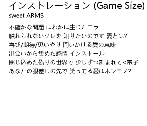 | Song | インストレーション (Game Size) |