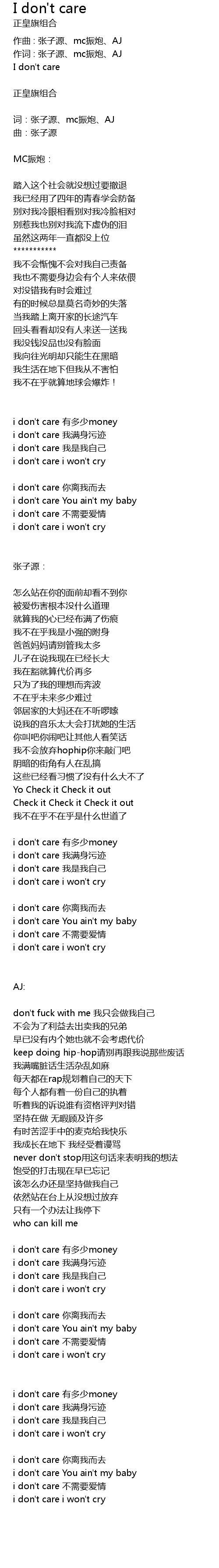 | i don't care 有多少money | |