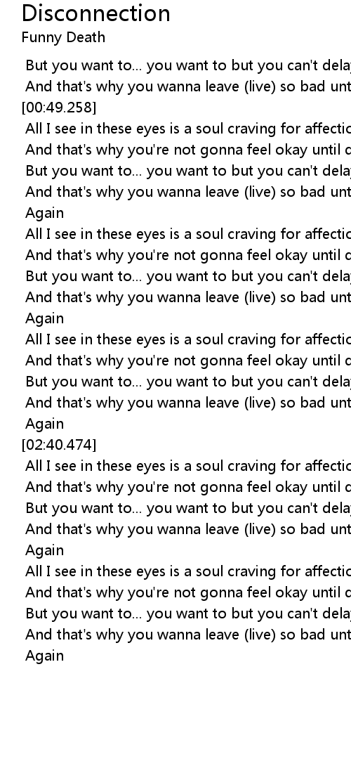 And that's why you're not gonna feel okay until disconnection |