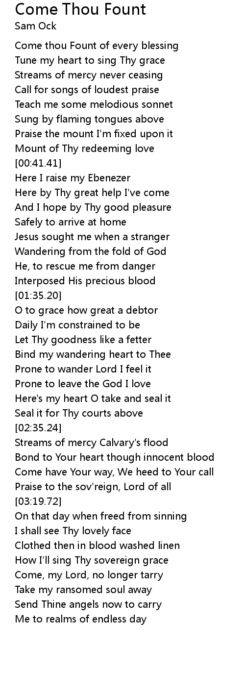 | [00:05.10] | Tune my heart to sing Thy grace |