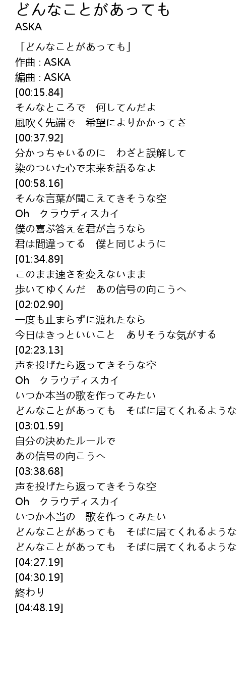 [04:17.91] どんなことがあっても そばに居てくれるような