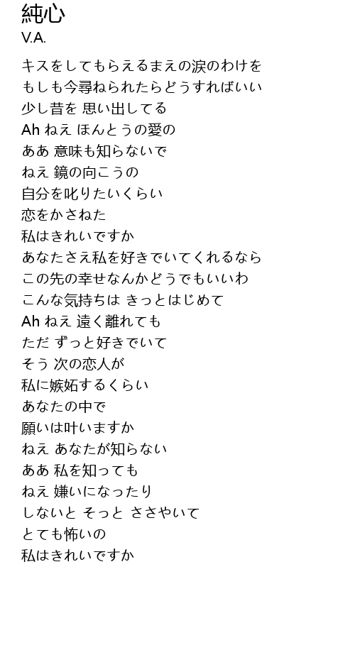 | [01:02.567] | Ah ねえ ほんとうの愛の |