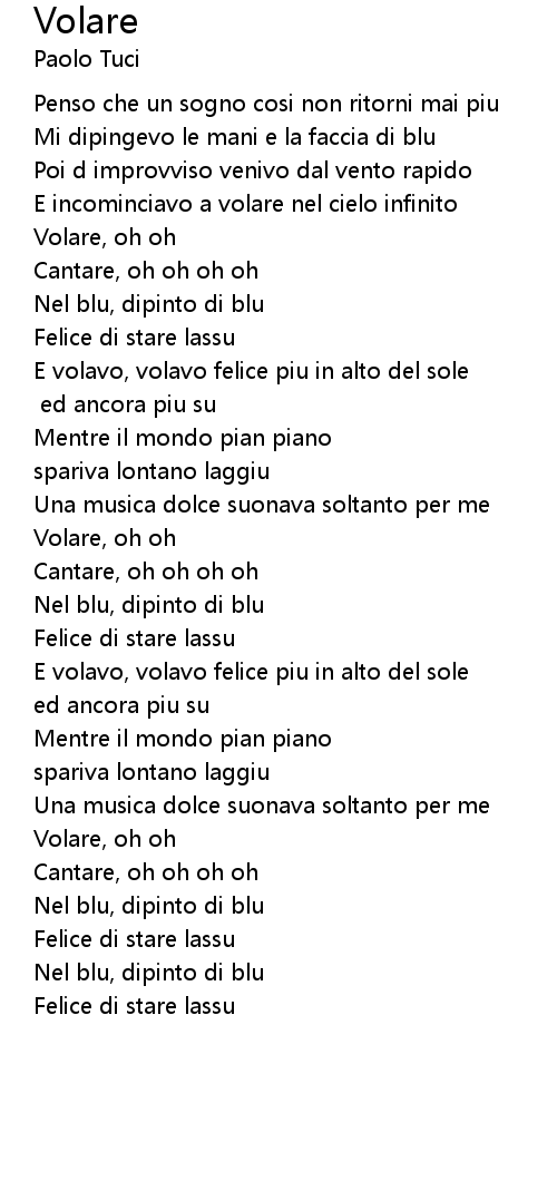 E volavo, volavo felice piu in alto del sole |