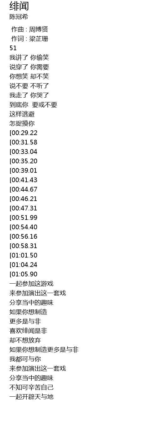 | [01:57.36][00:56.16] | 喜欢绯闻是非 |