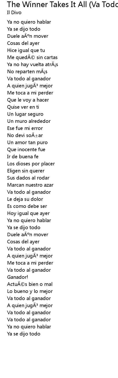 | Song | The Winner Takes It All (Va Todo Al Ganador) |