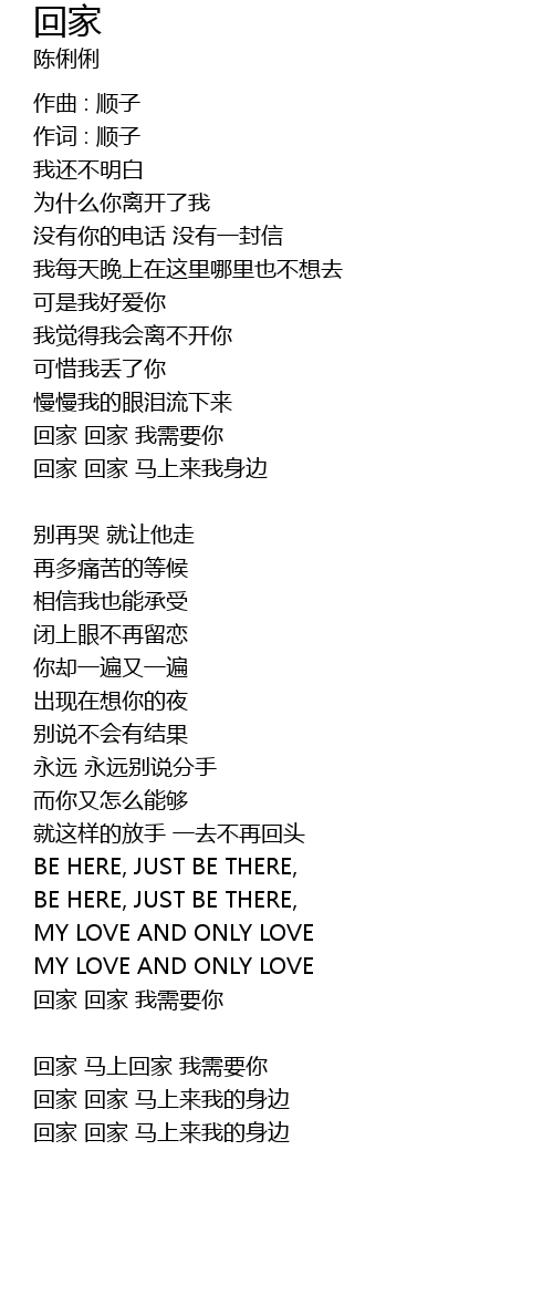 | 回家 回家 马上来我的身边 |