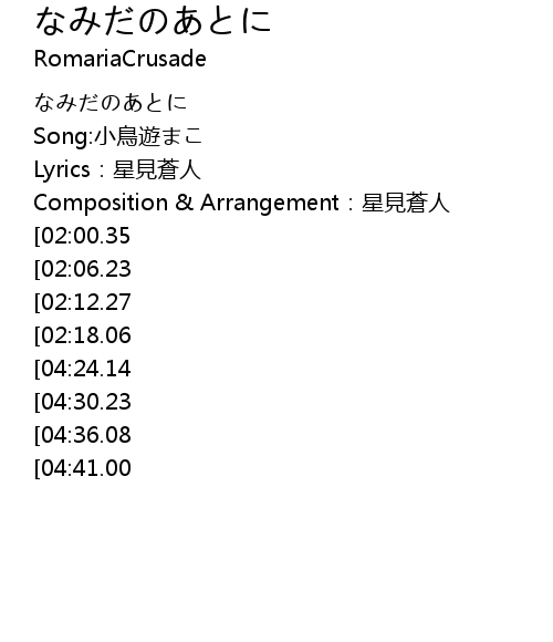 | [00:00.00] | なみだのあとに |