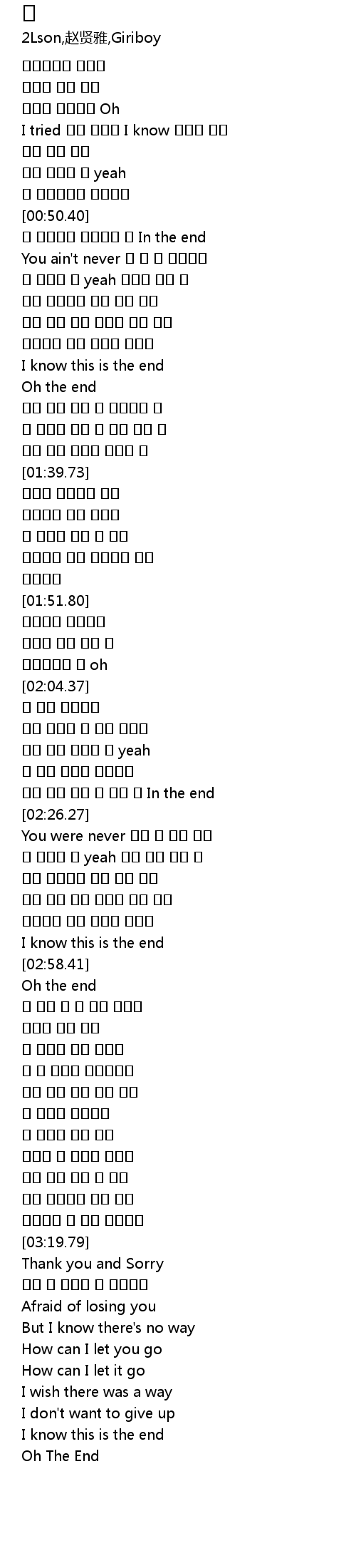 | [00:42.68] | 이미 끝이란 걸 yeah |