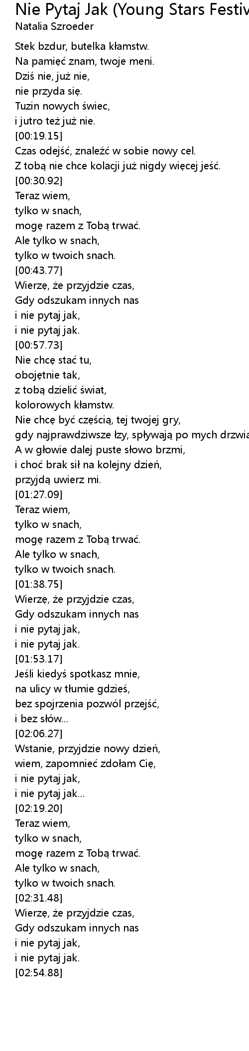 | Song | Nie Pytaj Jak (Young Stars Festival) |