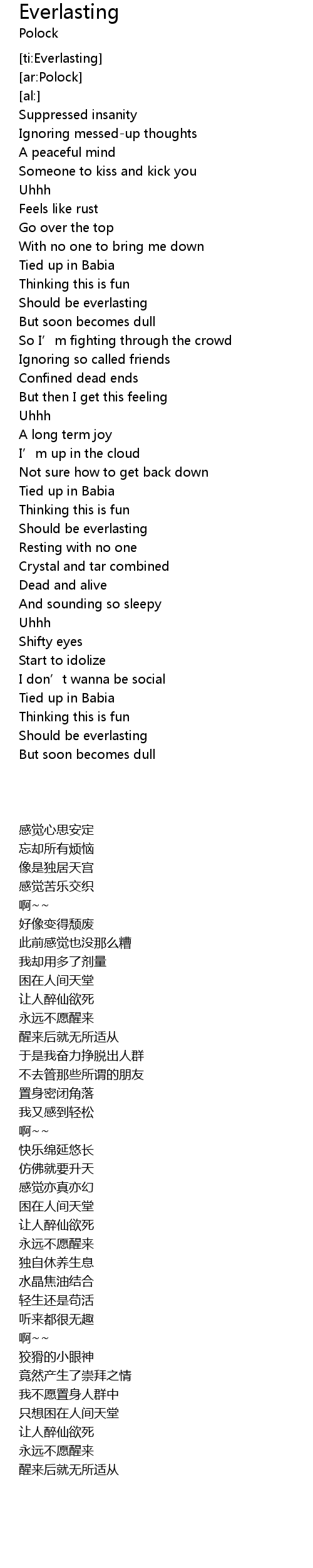 | [01:45.41] | Should be everlasting |