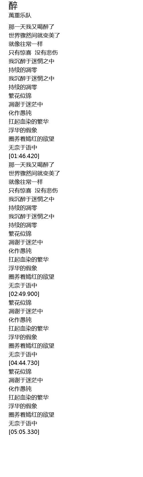 | [01:47.960] | 那一天我又喝醉了 |