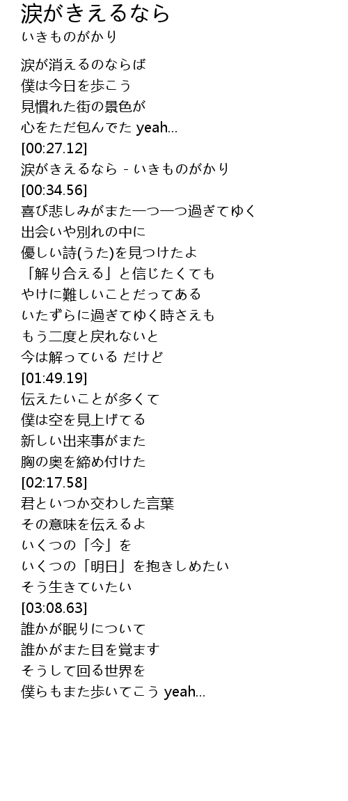 涙がきえるなら - いきものがかり |