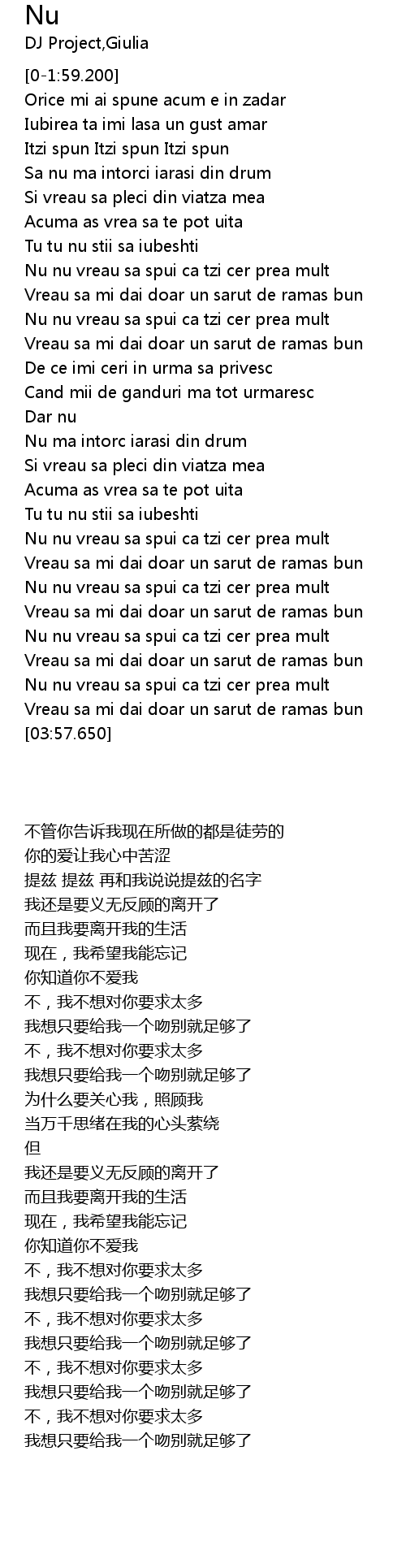 | [01:37.000] | Vreau sa mi dai doar un sarut de ramas bun |