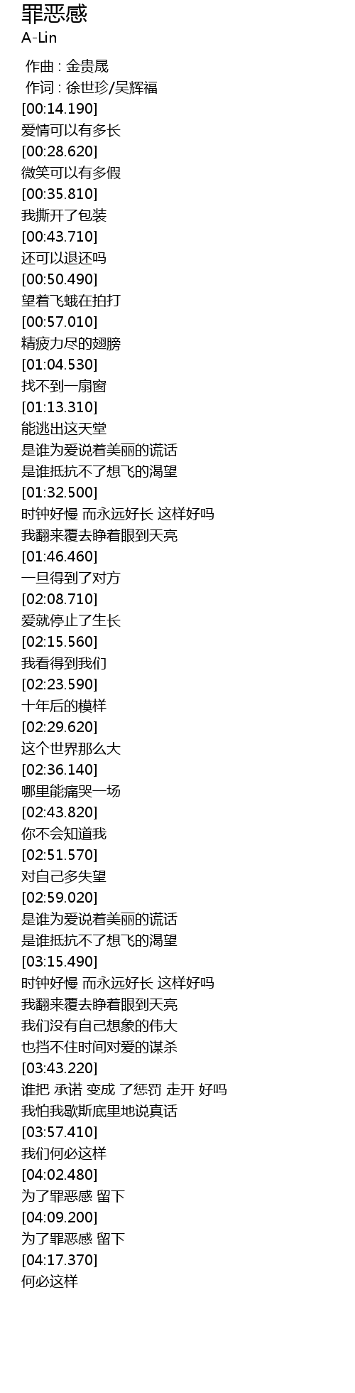 | [03:45.330] | 谁把 承诺 变成 了惩罚 走开 好吗 |