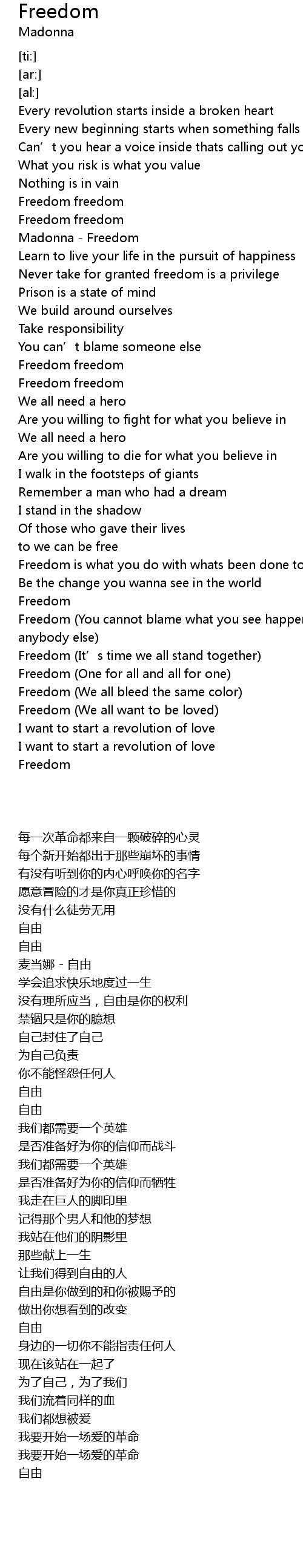 | [00:45.28] | Madonna Freedom |