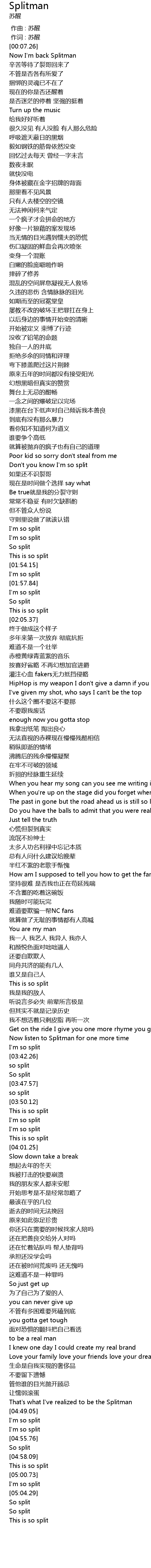 | [00:10.87] | Now I'm back Splitman |