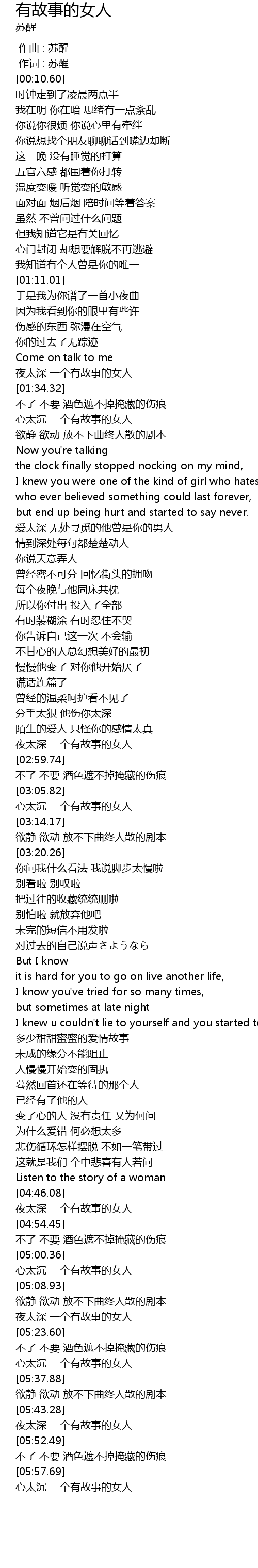 | [04:46.75] | 夜太深 一个有故事的女人 |