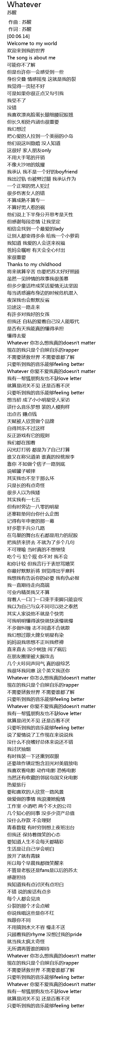 | [04:00.14] | Whatever 你怎么想我真的doesn't matter |