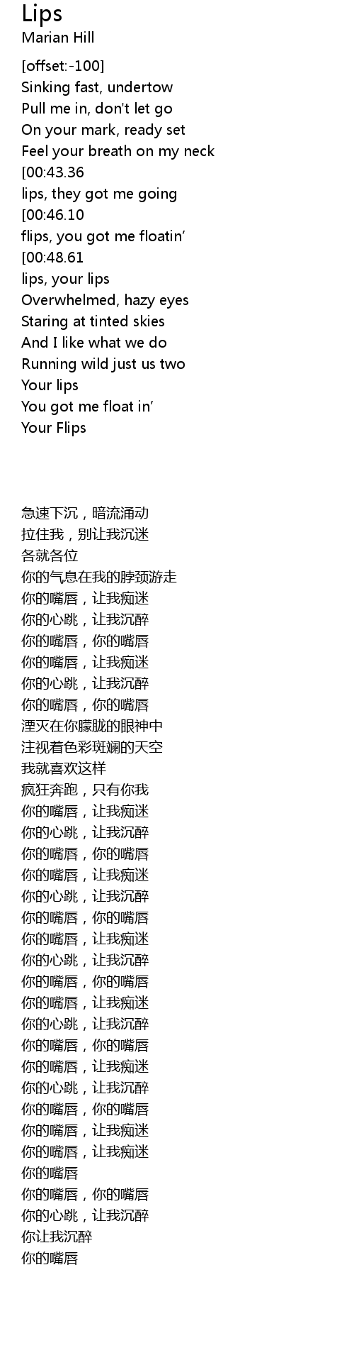 | [00:32.43][00:43.36][01:26.38][01:39.96][01:51.62][02:01.40][02:10.12][02:42.27] | Your lips, they got me going |